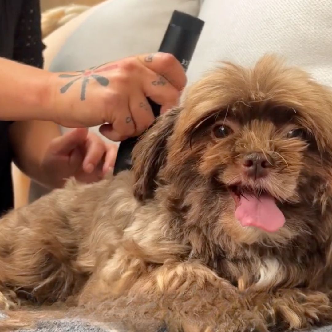 Första klippningen på vår shihtzu gick jätte bra. Man kan inte se hur mycket batteri det är kvar men inte hela världen. Är väldigt nöjd
